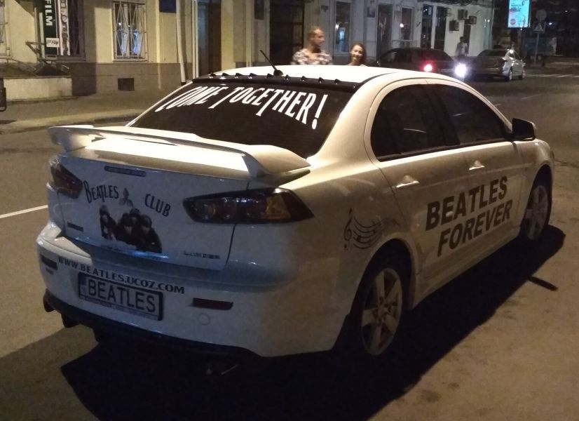 Среди однотипных авто встречаются свои, незабываемые экземпляры. Вот “Лансеров” последнего поколения пруд пруди, но посвященных группе The Beatles один, одесский)