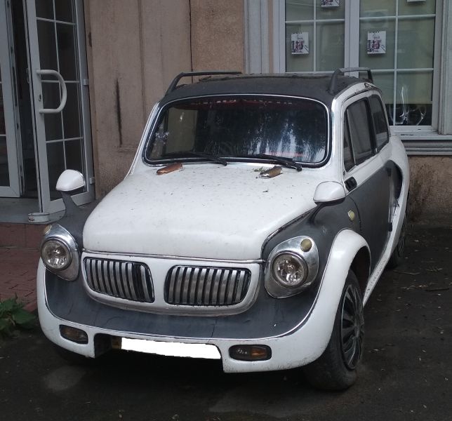 А вот это эксклюзив другого рода. Такая вариация легендарного “горбатого” Запорожца стоит рядом с домом с желтой дверью. Уникальность машины в том, что обвесы и всё остальное действительно выделяют её из толпы, а для особо любопытствующих сзади имеется пояснение с характеристиками двигателя. Видимо, тому кто на ней ездит, наскучили однотипные вопросы зевак.