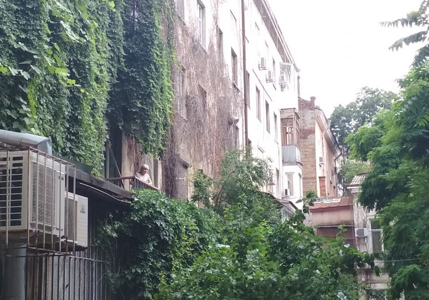 Жуковского, 27. Перенесемся во двор с некогда превосходным изумрудным виноградником. Почему “некогда”, опять же, можно ознакомиться в гайде по одесским дворикам. Здесь же просто ситуация, которая даже в постановочном фильме, наверное, звучала бы не так смешно, как взаправду. Пока жительница двора распиналась в том, кто виноват в погибели шикарного виноградника, в лучших традициях непосредственности указывая пальцем на окна квартир, чьи хозяева обрезали корни растению (дело было в будний день, поэтому многие “виновники” были на работе), окна одной из причастных на втором этаже попадали под указательный палец рассказчицы всякий раз, как в речи проскакивали “крепкие” словечки. Наконец, соседка решилась выглянуть в окно, чтобы проверить кто это успел обозвать её алкоголичкой, тунеядкой и наркоманкой в одном предложении. Ачевидно, она была в замешательстве. Я активно фотографировал округу и сразу не было понятно, то ли я турист, то ли из какого-то комитета. Но на всякий случай лица она не показывала.