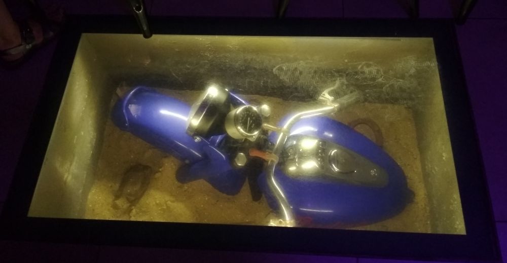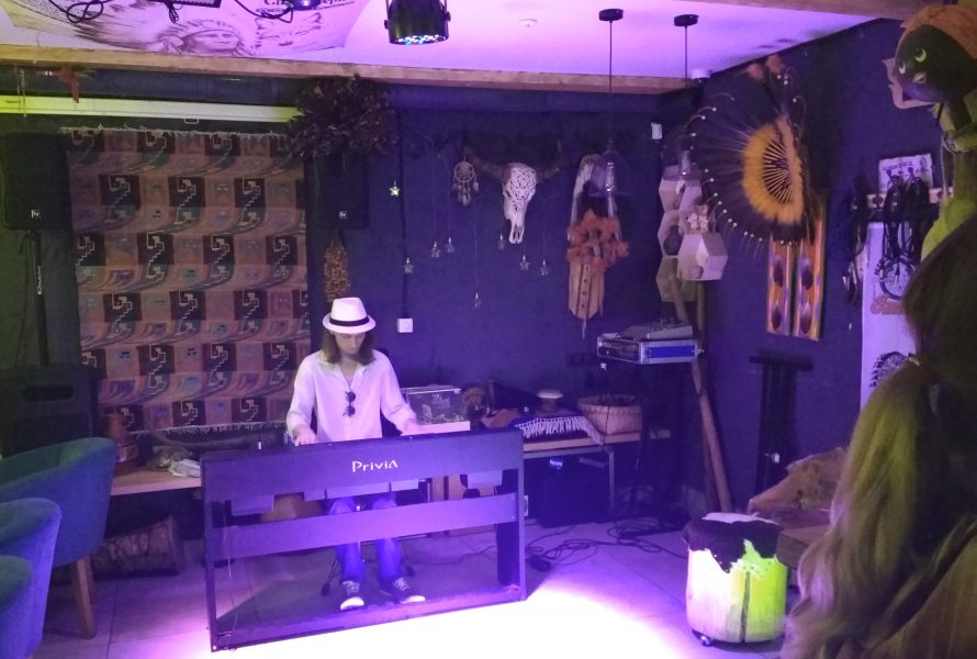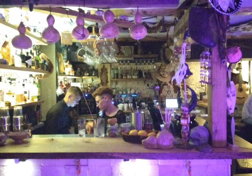 Даже на потолке висят шкуры животных (хочется верить, что бутафорские). Бар открывается в 18:00 и после захода Солнца преображается ультрафиолетовым светом ламп. Все это создает интересный, можно сказать магический образ. А по ночам не редки выступления местных музыкантов. Собственно, играющий снаружи (заведение находится в подвале) джаз и привлек сюда. Внутри, правда, парень на клавишных веселил совсем другой музыкой, но в духе заведения. Теперь к плохим новостям.