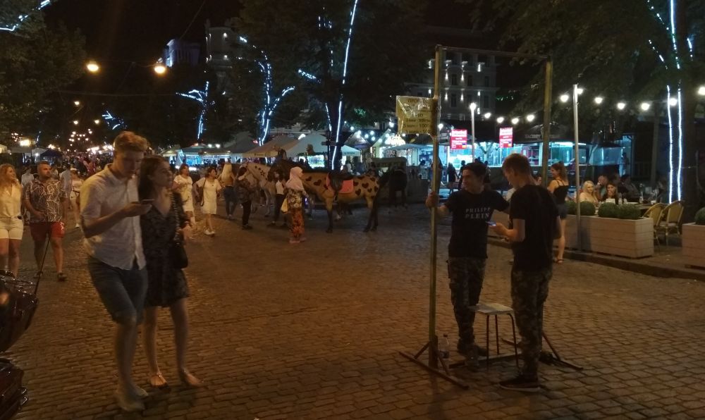 В один из дней поиски одесского колорита привели в общественный транспорт. Там довелось услышать и увидеть трогательную актерскую игру человека, у которого украли гармошку и ему, конечно же, не за что добираться в родную деревню, к дедушке. Все это было так печально и грустно, пока пару вечеров спустя он не встретился на ночной улице, бредущим на автопилоте с баночкой “Балтики 9”. К сожалению, увидел я его в последний день и повторно задокументировать его артистизм на видео времени не оставалось.