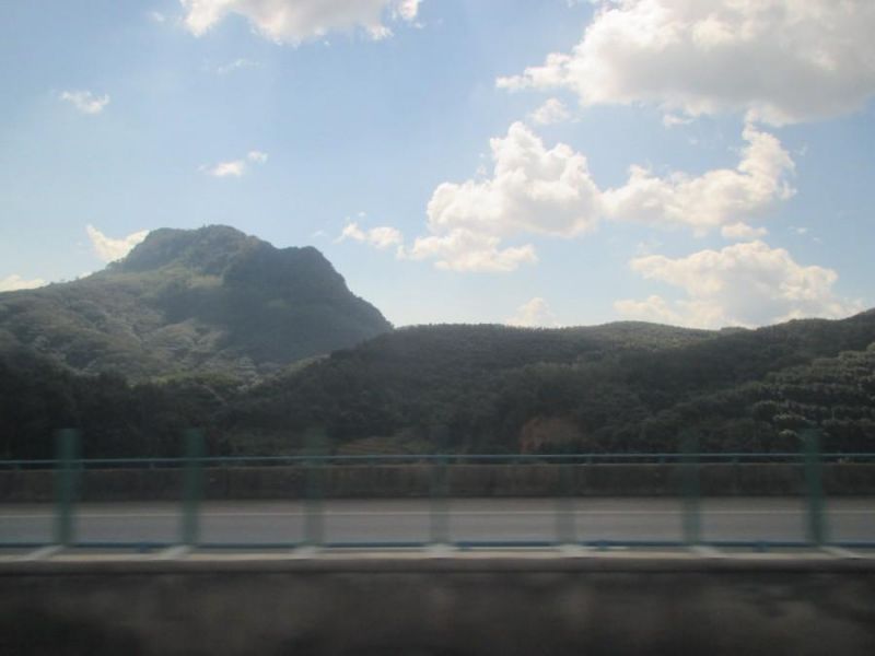 В первый день поезд шёл по южному Китаю - за окном виднелись красивые зелёные горы и бамбуковые рощи. Поезд постоянно заезжал в тоннели. Всюду была буйная субтропическая зелень. Небо было ярко-голубое.