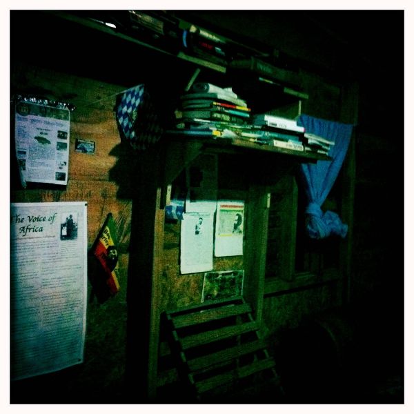 Мы приехали в дом Джа Би. Деревянный и просторный, убранство скромное. По всей комнате развешаны газетные вырезки с эфиопским королем Хали Селасси, которого очень почитают растафариацны. А на одной из вырезок была статья и про самого хозяина дома.