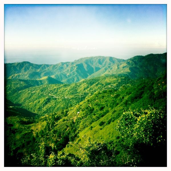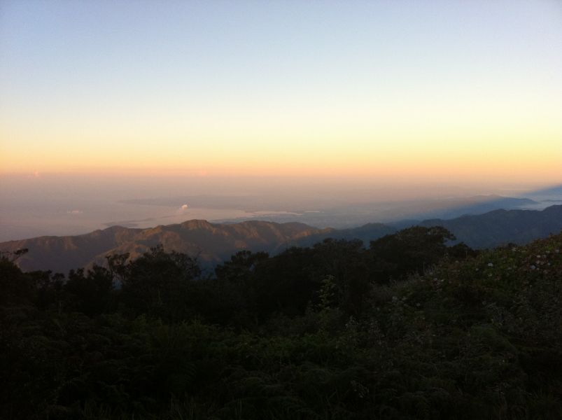 Дорога до вершины заняла 3 часа. Мы оказались на вершине, когда рассвет был еще не столько виден, сколько чувствовалось его приближение. Была абсолютная тишина, дополняемая только звуками многочисленных тропических насекомых. Кроме нас и собак на больше никого не было. Я взял с собой в дорогу “поющую сумку”, небольшой переносной динамик, который мне подарил приятель в Харькове 4 года назад. Я включил песню группы 5Nizza “Ямайка” и начал ждать восхода. Вскоре нежное утреннее солнце забрезжило первыми лучами и за считанные минуты осветило весь остров. Я понял, насколько Ямайка небольшая. С высоты немногим более в 2 километра я мог увидеть весь свой маршрут. На Юге светил еще непогашенными фонарями Кингстон. На Северо-Востоке чуть менее светлое пятно – Порт Антонио, в который я должен был прибыть к вечеру. Дальше на запад основные курорты Ямайки – Очо Риос, Порт Антонио и Негрил. По середине острова зеленая масса лесов живописных лесов и долин.