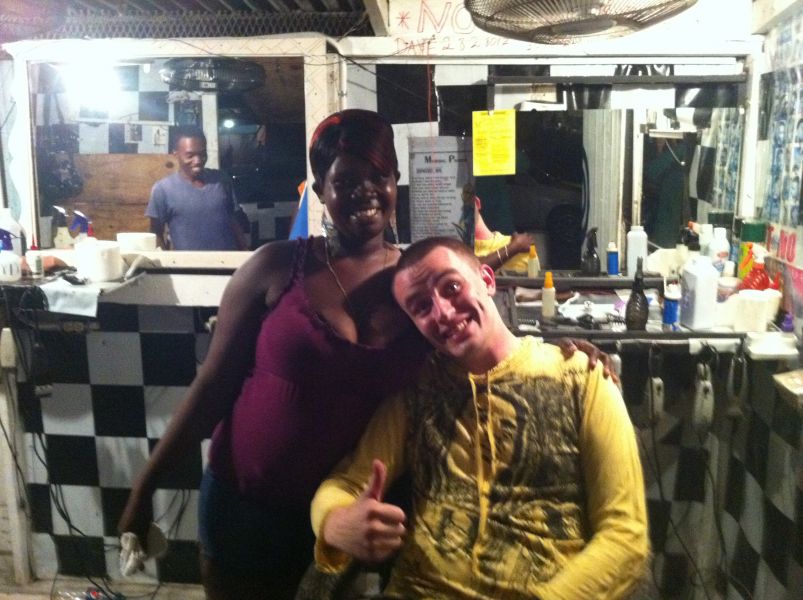 - Лучше повести вам - Ок, офицер. - А документы на байк есть? - Нет, у предыдущих хозяев не было документов. - Ну вы даете. А что у вас в сумке? Ганжа? - Что вы, сэр, у вас и без ганжи прекрасная страна. - Ну счастливого пути, берегите себя. Иными словами ездить подвыпившим и подкурившим без документов на байк и прав на Ямайке – нормально. Мы приехали в город Morant Bay в районе 4-х часов дня, я обменял деньги в одном из 2-х обменников в городе и рассчитался с Одли. Мы пошли в бар, потом Одли показал мне парикмахерскую, где он стригся и я решил впервые в жизни постричься наголо. Парикмахеров было двое. Меня начал стричь один из них, однако вскоре второй со словами: “Дай мне его сюда, ты ни хрена не умеешь “ подвез кресло со мной к себе и достриг меня. Когда он закончил, я увидел в зеркале нового себя. Еще никогда я не стригся настолько коротко.