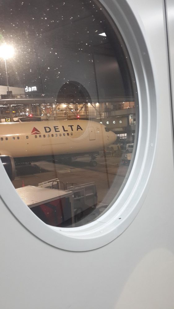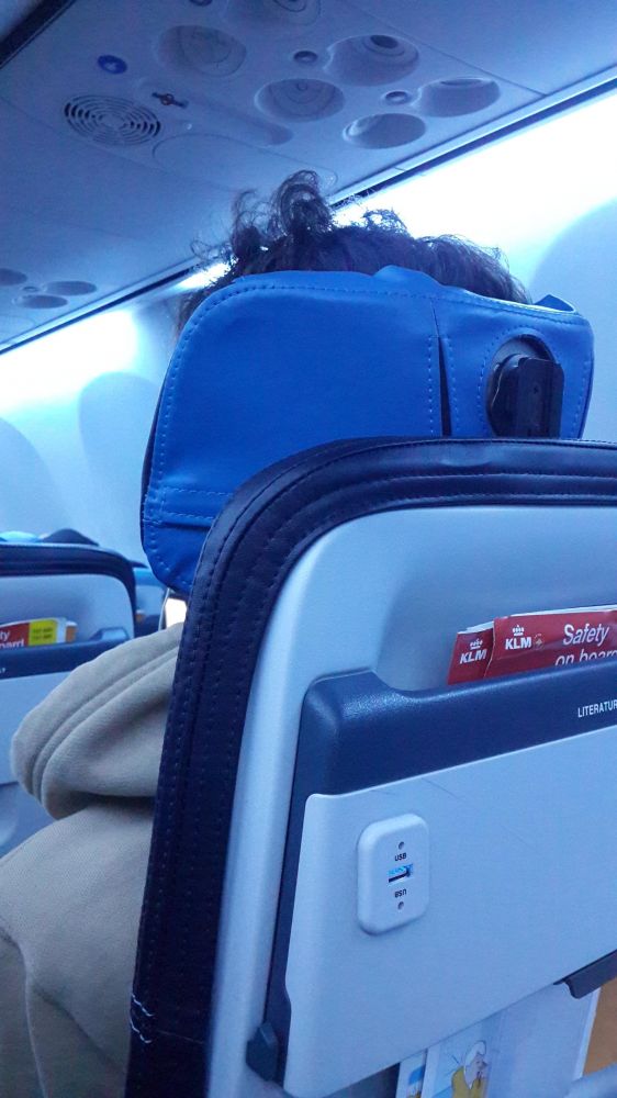 KLM - замечательная авиакомпания! Мне разрешают выбрать понравившееся место в салоне, и я лечу 7 часов с максимальным комфортом: одна на 2-х креслах.