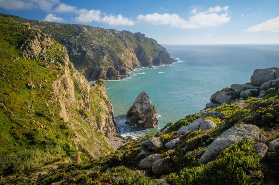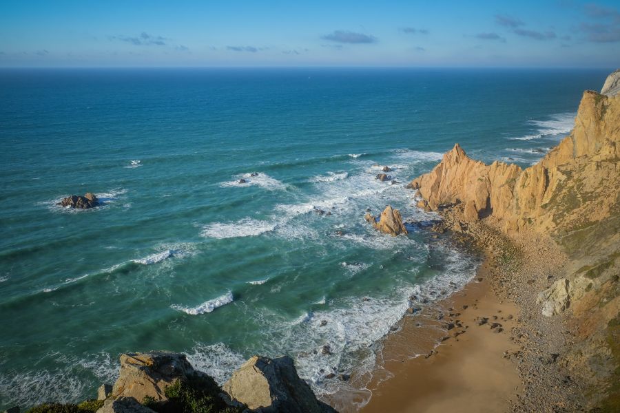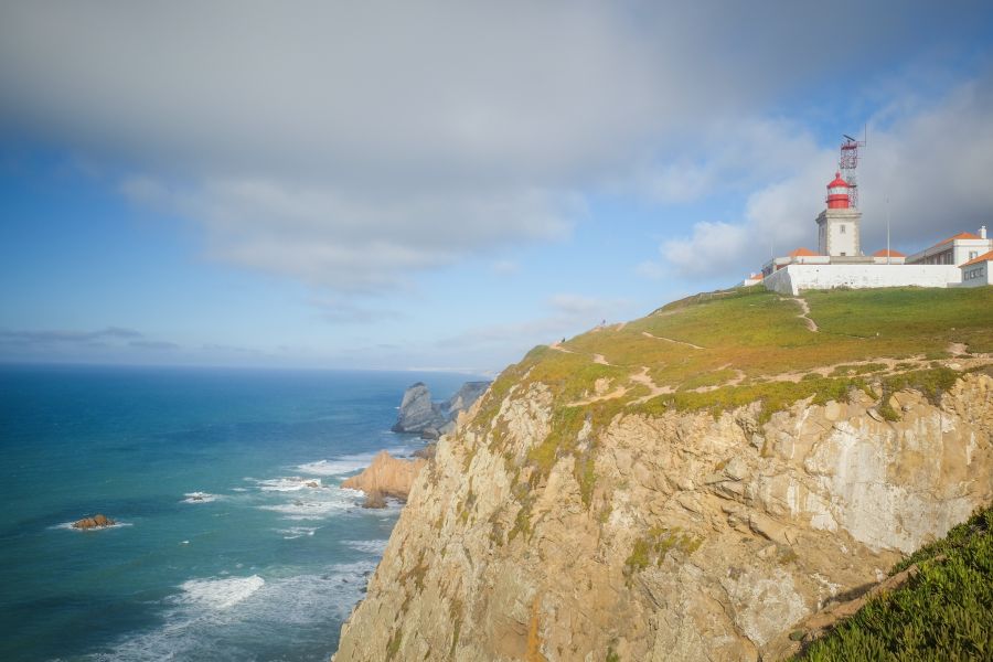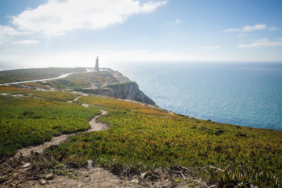 Одно могу сказать точно Лиссабон в разы дешевле Парижа. Позавтракав в одной из кафешек, я отправился в старинный португальский город Синтра. Этот городок примечателен тем, что весь назван объектом всемирного наследия ЮНЕСКО. В Синтре множество старинных замков, узких улочек и туристов, чересчур много туристов для такого небольшого городка. Побродив по Синтре совсем немного, я запрыгнул в автобус 403, спросите в Лиссабоне или Синтре любого и он вам ответит, что 403-ий идёт до Кабо да Рока или Кабу-да-Рока или попросту Cabo da Roca, что по нашему будет переводиться, как Мыс Рока. Уже в автобусе понимаешь, куда ты едешь. Около тридцати метров пешком и... обрыв, земля заканчивается, впереди только бескрайний Атлантический океан. Мыс Рока - это самая западная точка Европы, край света, если можно так выразиться. Я подошёл к краю, сел на камень и несколько минут смотрел, не отрываясь, в горизонт.