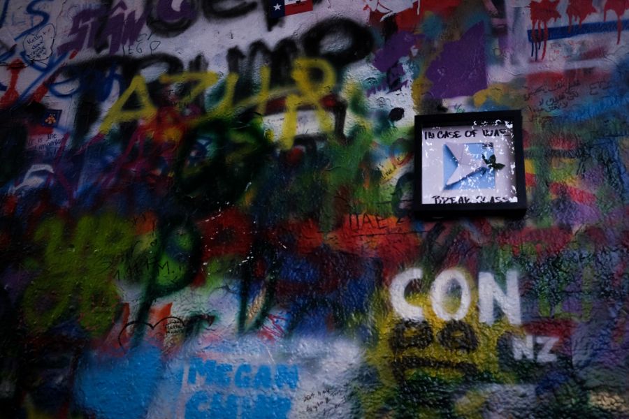 А ещё, когда экскурсия уже закончилась, я не мог не посетить одно очень знаковое для меня место - Стена Джона Леннона. Она образовалась стихийно, и очень многим напоминает арбатскую стену Виктора Цоя, но все же Леннон - это человек, который перевернул представление о музыке у всего мира. Рядом много школьников, которые вряд ли знают хоть одну песню Джона, и вряд ли смогут понять слова песни «Imagine». Они и сейчас расписывают стену чем-то «своим».