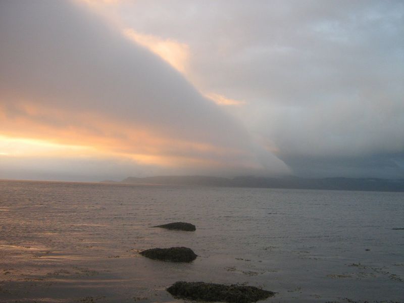 Это - грозовой воротник (метеорологический термин, roll cloud). Такие редко встречающиеся длинные облака могут формироваться около наступающего холодного фронта. Если нисходящий поток воздуха от надвигающейся бури заставляет теплый влажный воздух подниматься, то он остывает ниже точки росы, и образуется облако. Когда это происходит одинаковым образом вдоль протяженного фронта, может образоваться грозовой воротник. В таком облаке воздух может вращаться вокруг его длинной горизонтальной оси. Считается, что грозовой воротник не может превратиться в торнадо. В отличие от похожих выступающих облаков (shelf clouds), грозовой воротник полностью отделен от породивших его кучево-дождевых облаков.