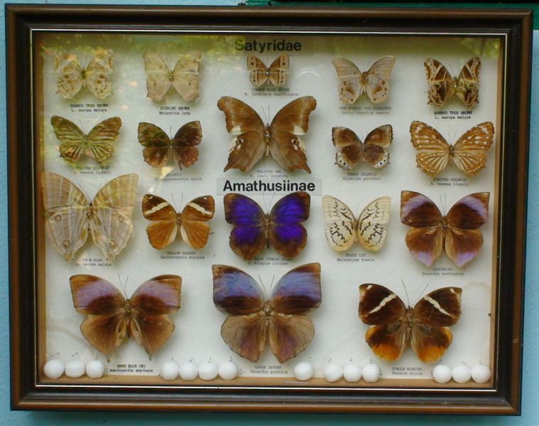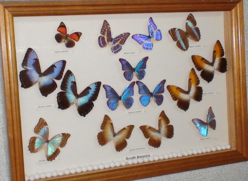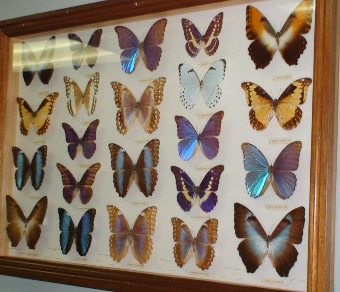 Сначала я осмотрел чешуекрылых. Кроме собственно летающих бабочек там есть ещё большая экспозиция с их засушенными собратьями и разными жучками, которая мне понравилась больше всего.