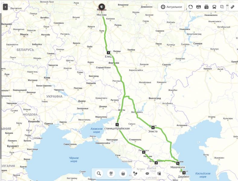 Итог: 11 дней, чуть больше 5000 километров и много интересного по маршруту Москва - ... - Краснодарский край - Ставропольский край - Кабардино-Балкария – Северная Осетия – Ингушетия - Чеченский транзит – Дагестан – Калмыкия – Воронежская и Липецкая области – Москва.