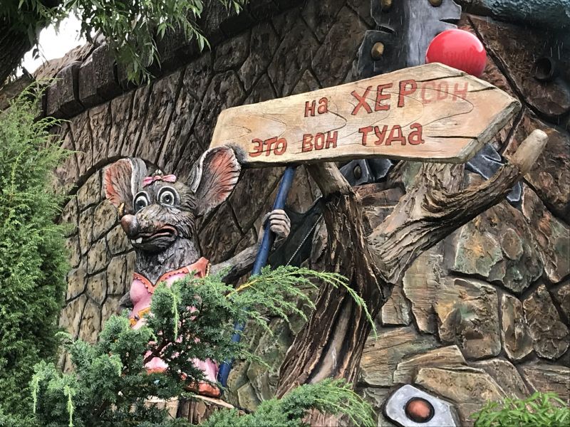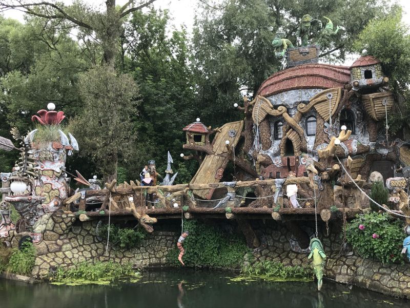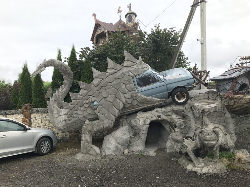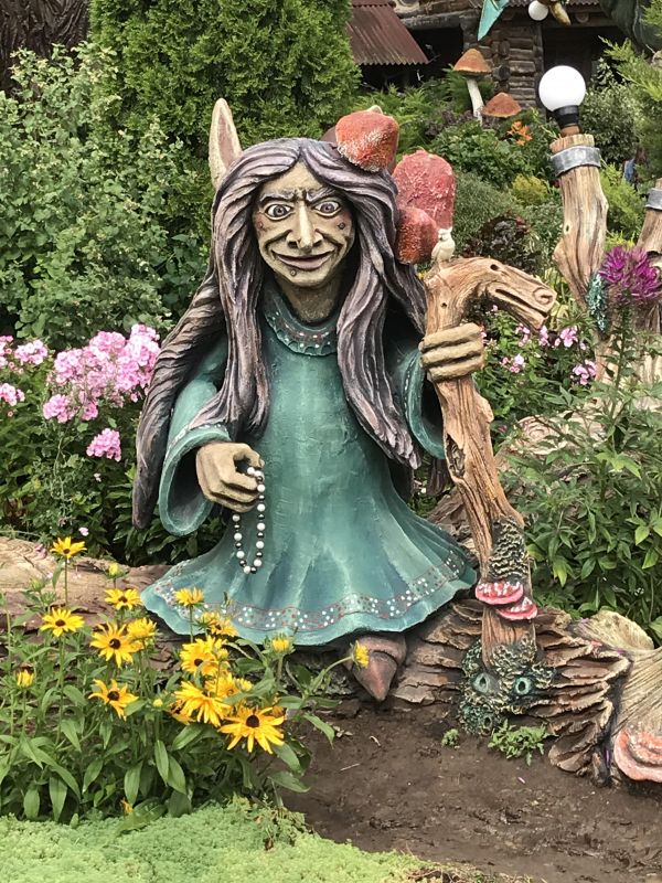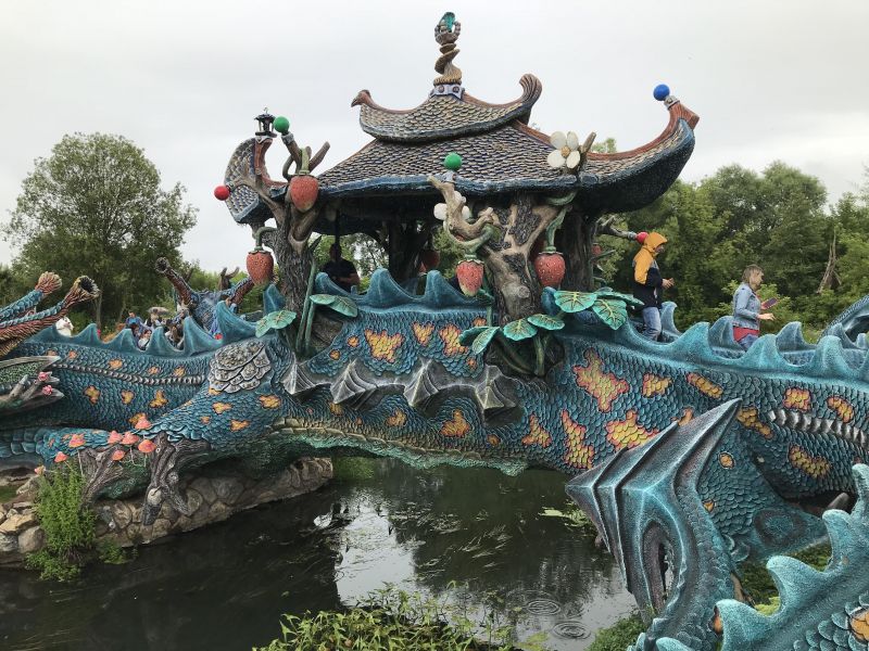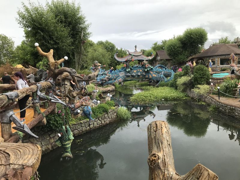Оказалось, что Вихляндия - это "Сказочное подворье", парк, где на ограниченном пространстве из арт-бетона созданы красочные композиции по (обобщенным) мотивам различных сказок: там пираты, тут драконы, вон - нечистая сила. И много цветов.