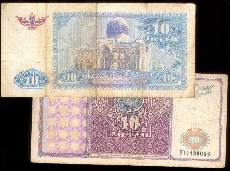 На купюре 10 сумов как раз изображен мавзолей Тимуридов (Гур-Эмир) в Самарканде.