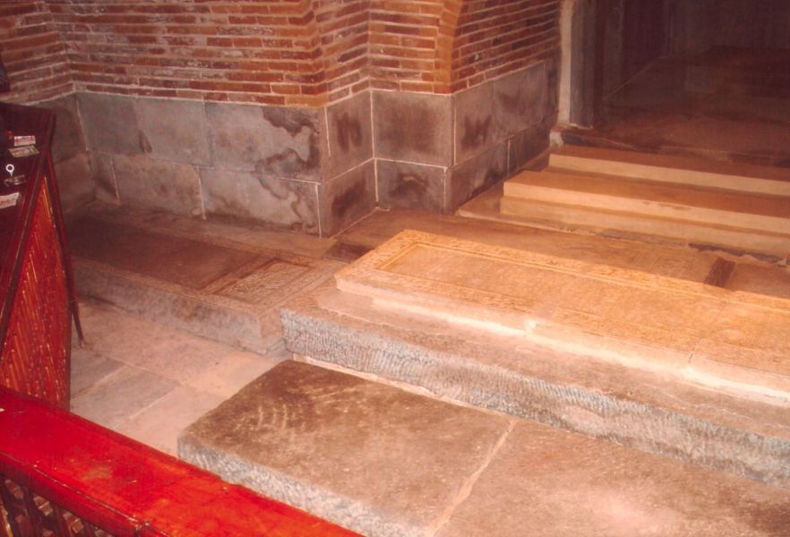 Но оказалось, что это не реальные надгробия, а как бы помпезно-официальные. Реально могилы находятся этажом ниже, в подвале, и они намного проще (слева в нише – Улугбек, правее на одной с ним оси – Тамерлан):