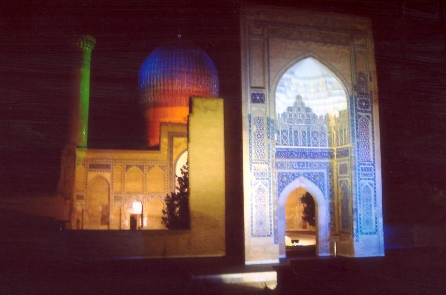 Но здесь речь – о нестандартном посещении одной из жемчужин этой страны – мавзолее Гур-Эмир в Самарканде. А нестандартным оно было вот почему. По приезду в город поздним вечером мы поселились в отеле Афросиёб-Палас буквально в 200 метрах от достопримечательности и вторым (после чая) делом прогулялись до нее. Мавзолей известен тем, что в нем находятся могилы Улугбека и Амира Тимура (Тамерлана) – не будем тратить время и буквы на рассказ о том, кто это такие. И тем, что могилу Тамерлана ученые вскрыли 22 июня 1941, нарушив пророчество о грядущем бедствии. Мистика, но именно в этот день началась Великая отечественная война.
