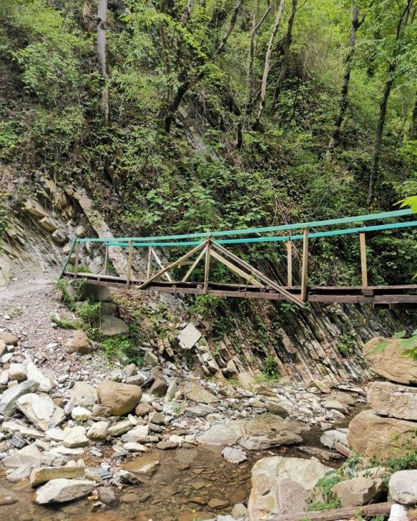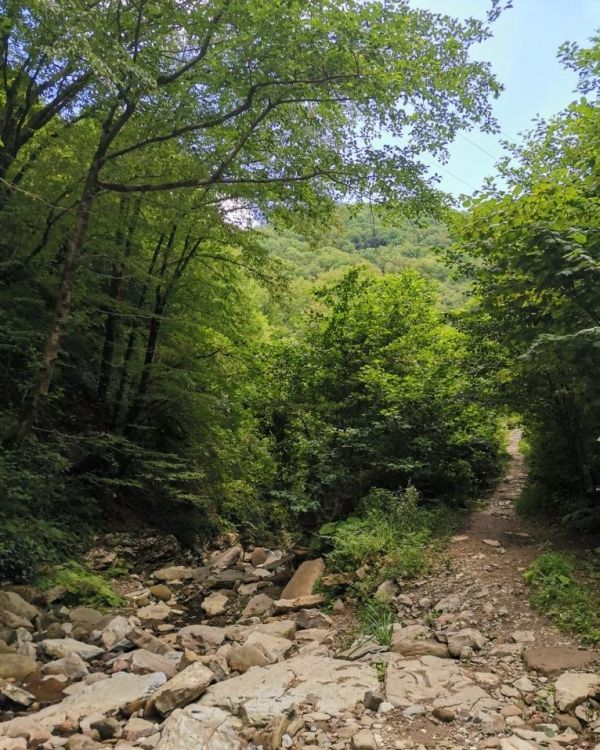 Прогулка по горной тропе дает заряд бодрости и оптимизма. Некоторые люди после подъема на тропу могут испытывать заложенность ушей и легкое головокружение. Это проходит! Минут 15-20 неспешной ходьбы приводят нас к последнему значимому повороту, после чего тропа снижается к сухому броду в ложбине. В этом месте прекрасно себя чувствуют дети. Им здесь интересно играть в ручье!