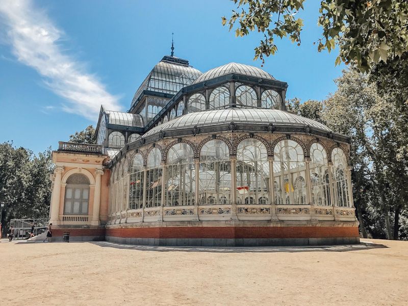 городской парк Retiro (красивейший большой зелёный парк с прекрасными садами в разных уголках-эдакий испанский парк Горького). В нем же находится Хрустальный дворец (бывшая оранжерея, сейчас открывается под выставки) и Дворец Веласкеса (бесплатный, так же выставки)