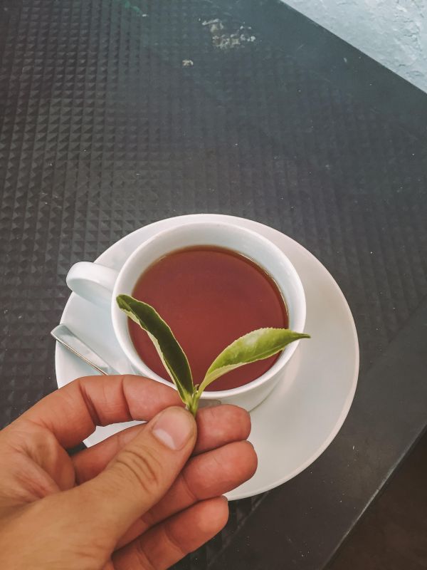 В отеле нас встретили чашечкой чая, украшенной настоящим листом чайного дерева. Это неудивительно, ведь в окрестностях Нувара Элии располагается огромное количество чайных плантаций.