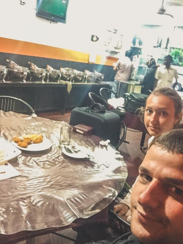 Остановились в Хаттоне поужинать. Было уже достаточно поздно, поэтому очень сложно было найти работающее заведение - проехав весь город, увидели лишь одно. Это была забегаловка для местных, а из еды у них уже почти ничего не осталось, кроме острейших пирожков! Казалось, что вся начинка состоит только из чили перца!!!! Жгло как никогда прежде! Но мы были вынуждены съесть хотя бы их, потому что были очень голодные, и путь предстоял неблизкий. Зато хозяин оказался очень милым и вообще был крайне удивлен, увидев в своем заведении туристов!