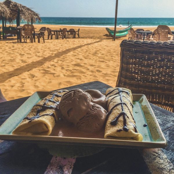 На протяжении всего пляжа в Хиккадуве стоят различные лежаки - есть шезлонги, а есть прямо практически кровати! Заказав что-нибудь в заведении, которому принадлежат лежаки, вы можете хоть весь день использовать их бесплатно! На самом деле это очень удобно, и мы всегда этим пользовались. Шли завтракать в наше любимое место, а потом сразу же ложились отдыхать, загорали и купались. Так проводили по несколько часов в день.