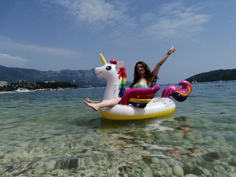 На пляж мы взяли хвост русалки, а еще купили надувного единорога. Веселились, фоткались и смешили весь честной народ на пляже. Получили массу положительных эмоций и кучу прекрасных фоточек.