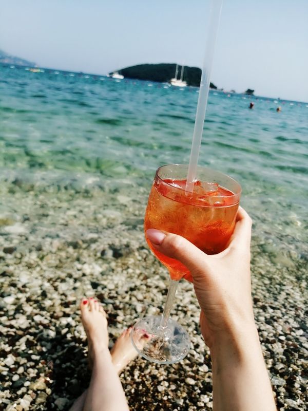 И ура! Мы побежали на пляж, предварительно обмазавшись маслом от загара. Пляжи в Будвы все общественные, можно лежать на песне, на своих полотенцах или же, заплатив от 5$ комфортно отдохнуть на лежаках с зонтиками, которые принадлежат кафе на берегу моря. Я даже купила себе апероль. Как никак первый день в Монтенегро! Вода Адриатического моря встретила нас теплом и уютом. Красота неописуемая! Народа на плаже, правда, много, будто в нашем Геленжике. Но русских было мало, слышался в основном сербский язык. На пляже мы провели около 2 часов, вдоволь накупавшись и немного сгорев.