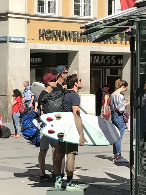 Несет свои воды через город. Очень быстрая и холодная. В каких-то местах Изар образует такие волны, на которых могут тренироваться сёрферы. Сёрферы в городе, далеком от океанских волн!