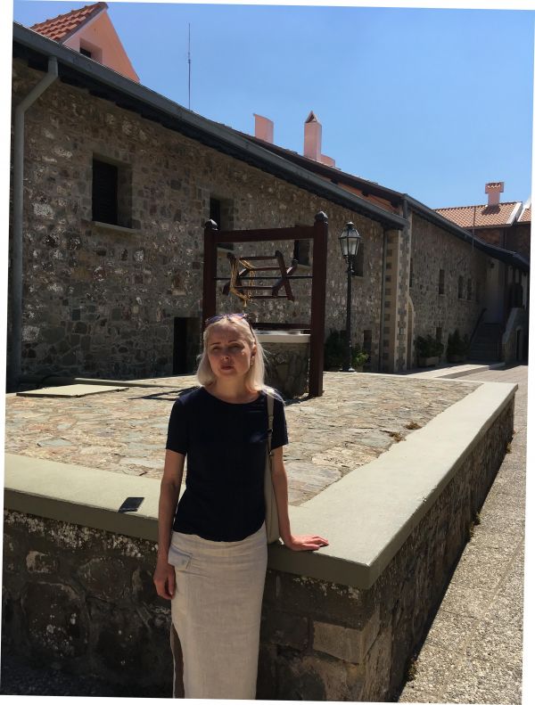 Первое достоверное упоминание о монастыре Киккос, как сказала нам гид относится к XII веку. Гид-историк показала мне наиболее древний каменный фрагмент храма