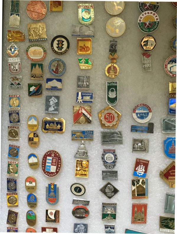 Дополняет обстановку коллекция значков. Сознайтесь, кто в детстве собирал значки и марки.