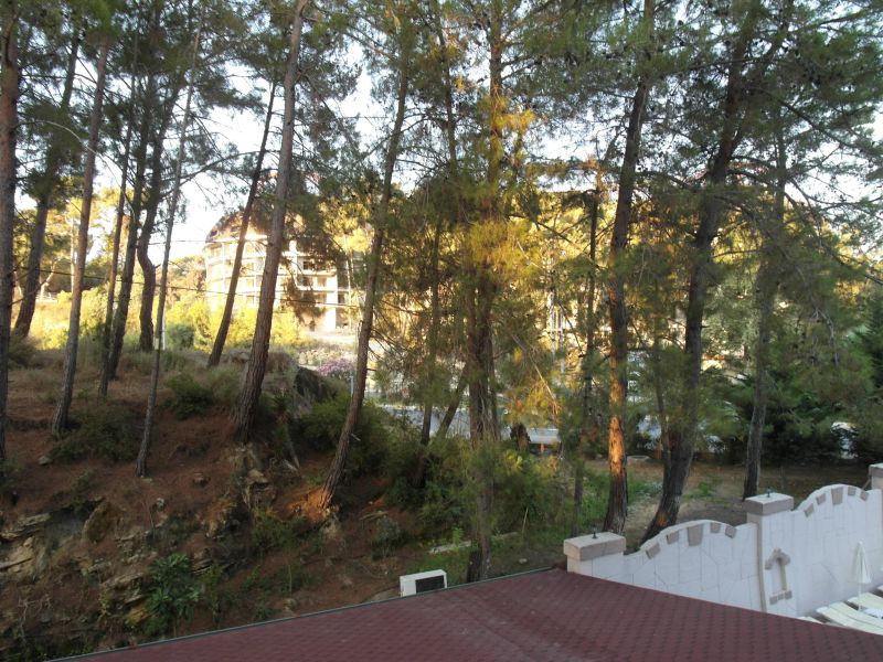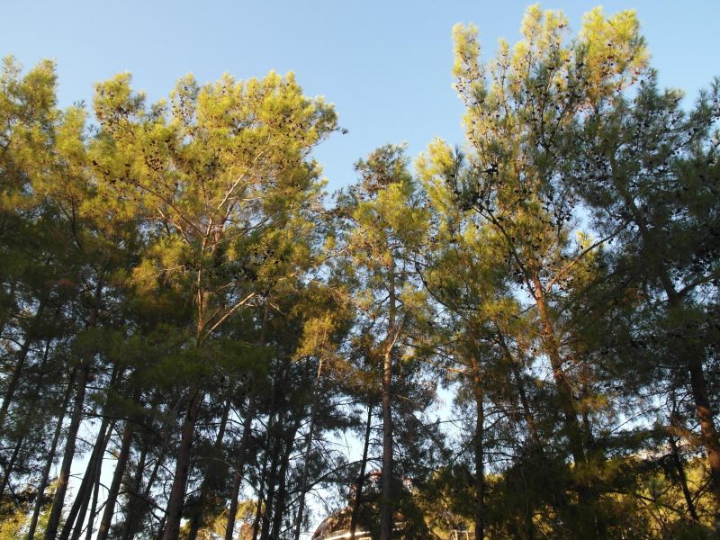 Вид с балкона на какой-то земляной откос скрашивали только чудные средиземноморские сосны
