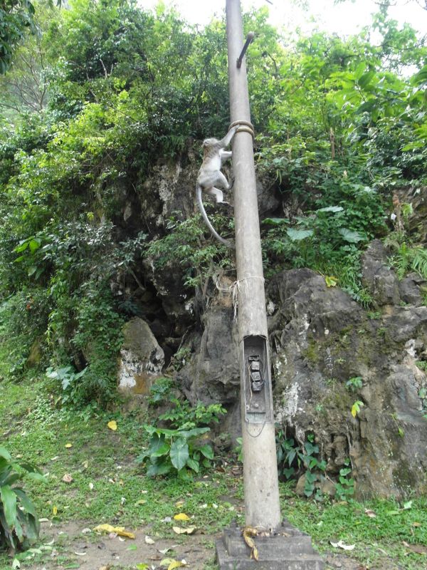 Индуистский храм обезьяны сливается со скалой, по которой верующие поднимаются к небу для поклонения.