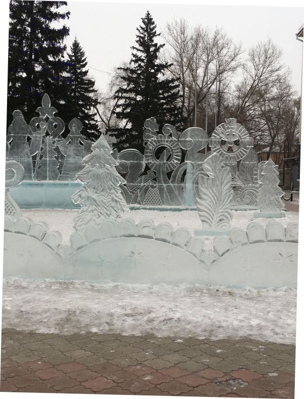 Зимой мой Абакан украсили вот таким вот ледяным карвингом.