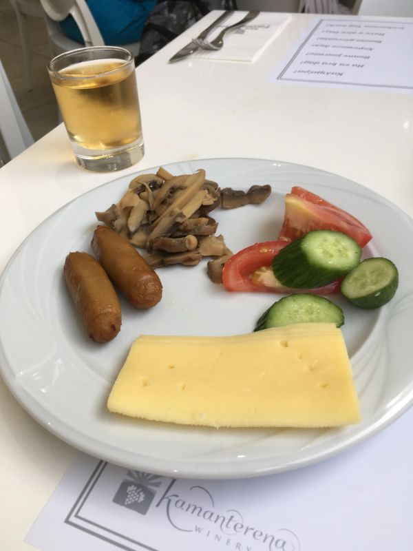 Свежие овощи – помидоры, огурцы, трава от руколо до привычных салатов и совсем неизвестных травок интересного вкуса. Все это употребить можно как с привычным оливковым маслом, так и с изумительным местным садзыки – холодный соус из сметаны, измельченных огурцов и очень особенной на вкус травки.