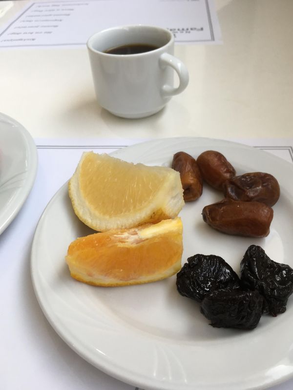 Из фруктов в ресторане всегда были арбузы, грейпфруты, яблоки, груши. Маринованные и свежие оказались приятного вкуса. Всегда были сухофрукты – финики, чернослив, курага.