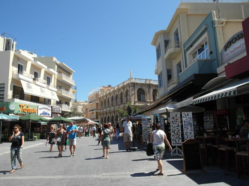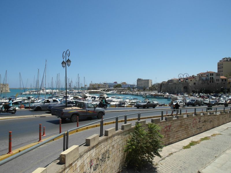 На улицах Иераклиона довольно шумно от звуков готовки из ресторанов, от гула прибоя, от самолетов, которые садятся на взлетку, с которой тоже видно море. Все это перекрывают звуки судов, отходящих из порта.