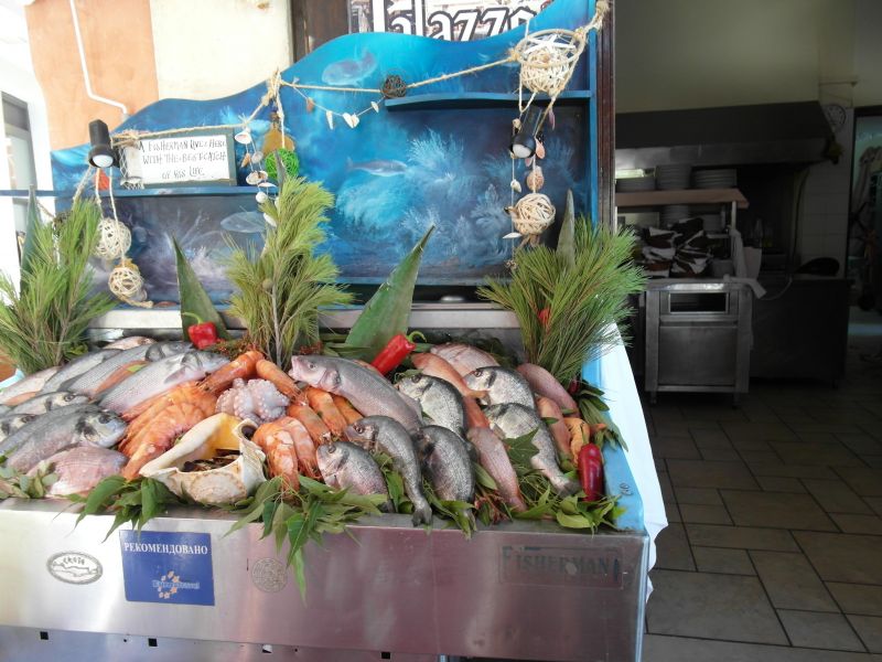 В приморской Ханье часто можно увидеть лотки со свежей рыбой и морепродуктами.