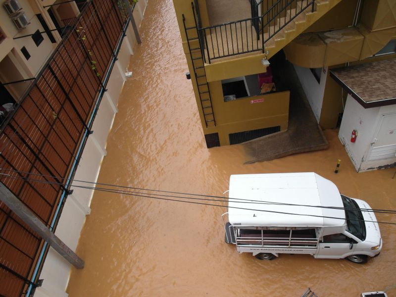 За один примерно час дождя наш идеально прибранный отельный двор и соседствующий с ним огород превратились в заливные луга.