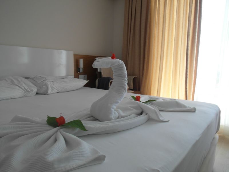 Что в целом нас порадовало так это - тишина в огромном отеле сотрудника как-то удалось этого добиться. И чистота. Горничные очень ждут чаевых и если мы их не разочаровывали, то они сооружали вот такие фигуры из постельных принадлежностей.