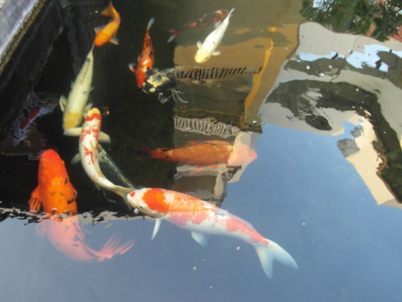 На гигантской территории отеля было много корпусов и стояли они среди цветов и зелени и глаз радовали великолепные красные и белые жирные рыбины в декоративных бассейнах. Бассейнов же для людей я насчитала семь. Хотя, вполне быть может чего-то и не учла. Бассейн с джакузи почему-то оккупировали большую часть суток солидный мужчины. Бассейн с морской водой, вероятно, для тех, кто ленился дойти до моря. Большой бассейн под нашими окнами был как раз для души - с пресной водой, глубокий и в нем можно было долго плыть, а не пересекать в два гребка. Был бассейн и для малышей - мелкий с теплой водой и игрушками. И, напомню, все это чудо в "трех звездах".