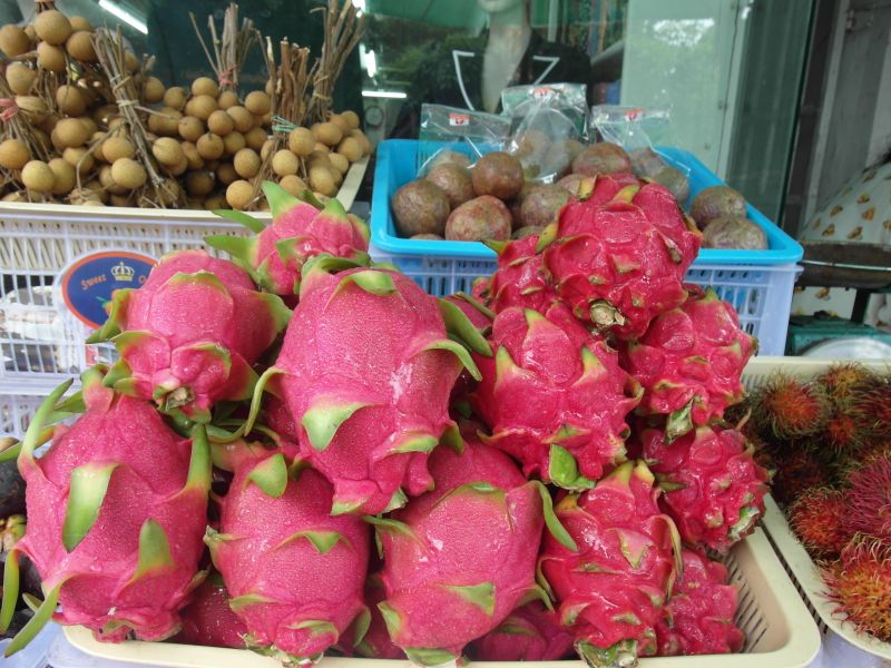 А какие фрукты мы покупали на рыночке на пути к морю. Тайцы не случайно гордятся дурианом - фрукт этот по калорийности может заменить полноценный обед. Мне понравились кисленькие "чесноковки" мангостинов и тайская тыква - папайя, обладающая свойствами антиоксиданта.