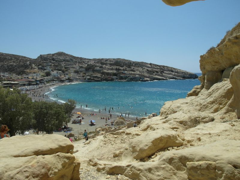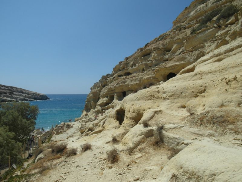 На самом юге Крита на берегу Ливийского моря – ну то есть мы привыкли говорить Средиземное море, но местные называют воду между Критом и Африкой так, мы остановились на обед в местечке Матала, где пообедали тазиком жареной рыбы и запечённым сыром. После обеда помыли ноги в Ливийском море, сделав шаг к Африке