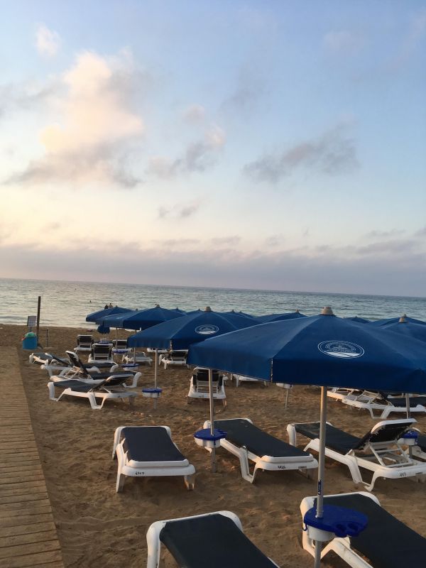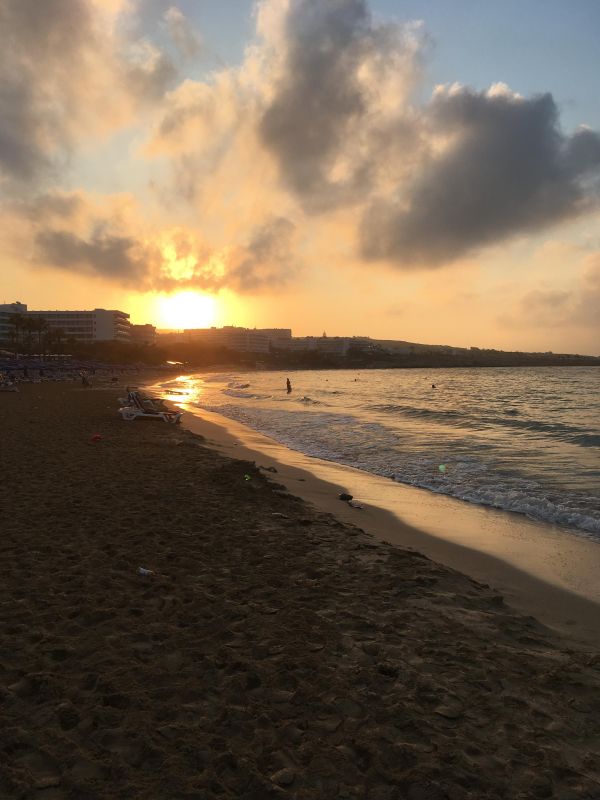 Что хорошо в Айя-Напе – то, что можно сразу найти пляж, а со временем выбрать пляж соответствующий отпускным намерениям. На песчаный пляж нашего отеля можно коротко попасть через калитку заднего двора. У этого пляжа привозной золотистый песочек и пологий спуск в море, что привлекает сюда безумное количество туристов, даже, когда солнце в зените и жара больше 50 градусов и никто не уходит часов до 7 вечера, когда в отелях начинают кормить. Глаз на пляже радует маяк, он создает атмосферу покоя утром.