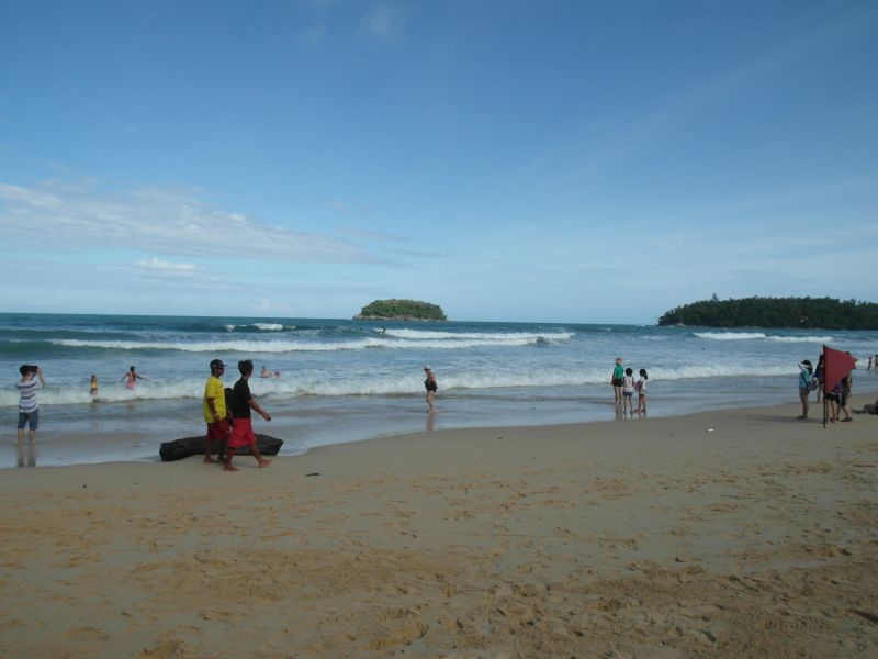 Почти весь сезон спасатели вывешивали желтый или красный флаги, что означает - купаться нельзя. Однако, это не останавливало русских и китайских туристов, которых здесь большинство и очень беспокоило тайских спасателей.