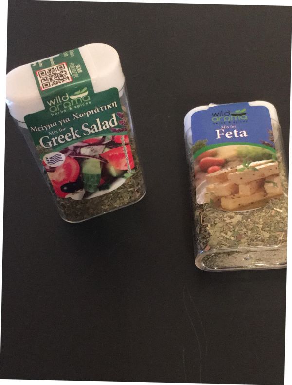 Ну, а самые замечательные приправы я привозила из Греции. Приправа для "деревенского" салата, который мы называем "греческим" имеет легкий вкус, который подчеркивает сочетаемость ингридиентов - слегка кислых томатов, соленой феты, маринованых олив и заправляется, конечно вся эта прелесть оливковым маслом. Ну, масло тоже бывает разного отжима и содержит разные ингридиенты. Вот это предназначено как раз для салата.