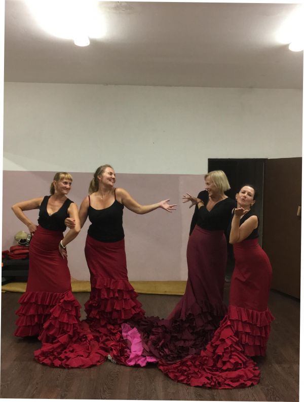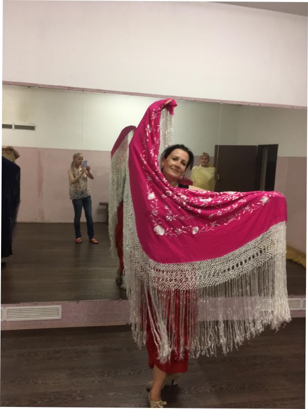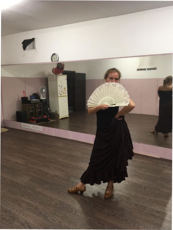 Надя очень выразительная женщина в танце и вообще, говорит, что в определенный период жизни, когда дети выросли, а внуков еще не было, душа попросила наполнения. И, поскольку танцевать бальные танцы, которые она всегда любила было (на ее взгляд) поздно, нашла для себя Фламенко, буквально по объявлению в газете. Когда начинала танцевать про испанскую хореографию имела отдаленные представления, но вот уже 10 лет как танцует.