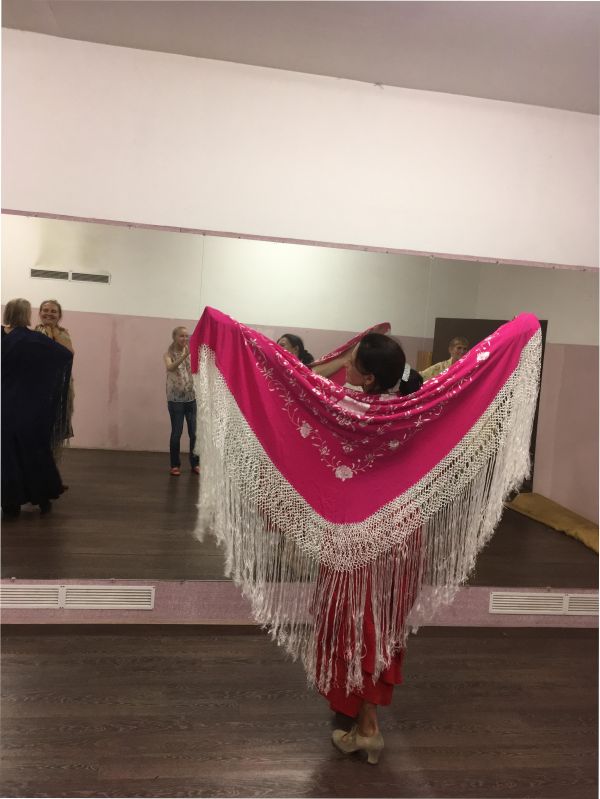 Общее для них для всех стремление поделиться энергией, радостью, остротой чувствования. Фламенко его исполнители из «Фиесты Фламенко» рассматривают как то, что они танцуют по жизни бескорыстно и заразительно. Это я почувствовала на себе, мне дали постучать бостоном (тростью), я приняла участие в крике, выхожу в конце занятия на поклон и самое главное ухожу с тренировок совершенно в другом эмоциональном тонусе, чем на них попадаю.