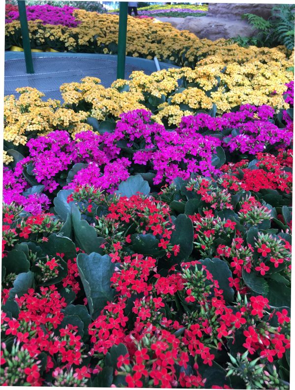 Теплолюбивые каланхоэ раскрашены здесь в сложные цвета