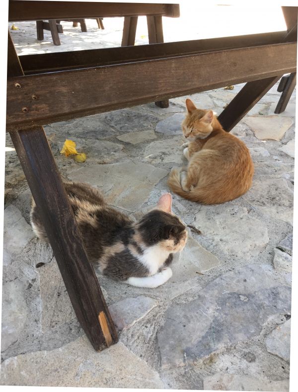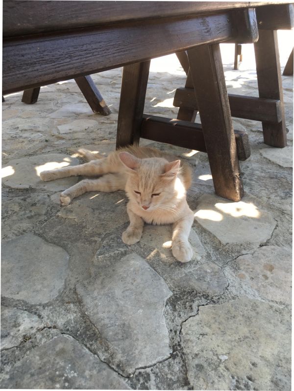 А вот эти, совершенно не привычного цвета кошки обитают у моря на Северном Кипре, кормятся в тавернах подаяниями путешественников и поваров и рыбкой от рыбачков