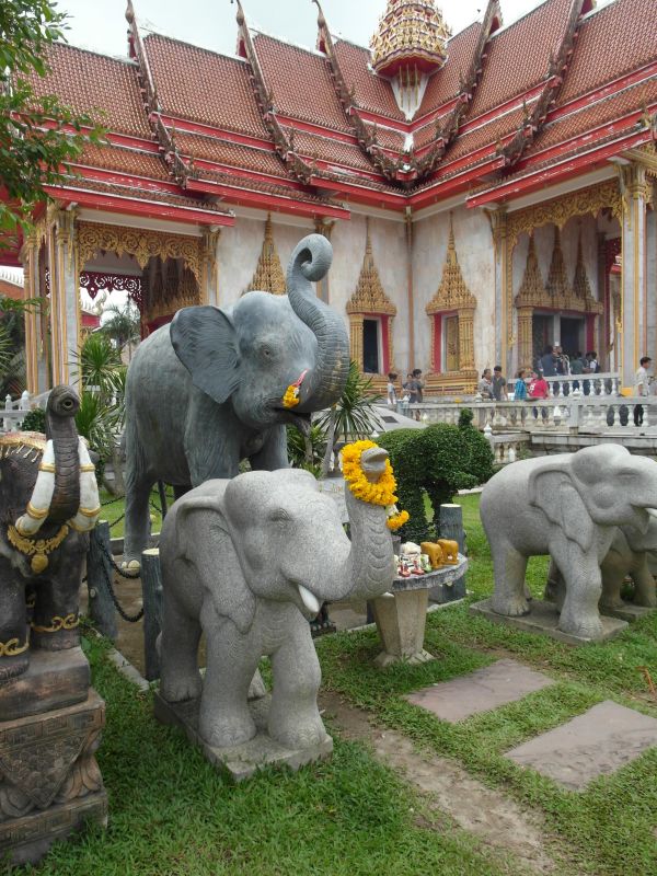 В буддизме слон считается священным животным. Вот эта группа размещается у входа в храм.