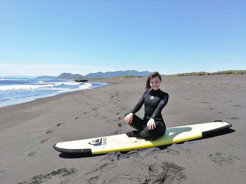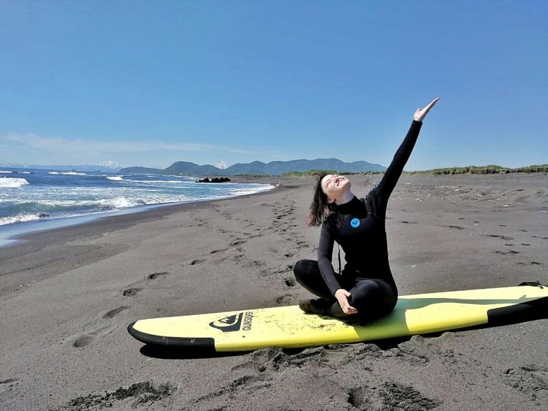 Честно говоря, меня больше манили вулканы Камчатки, чем неиспробованный вид спорта, а учитывая, что волн я откровенно боялась, с первого взгляда удовольствие для меня было сомнительное. Но я решила бороться со страхами и в этом мне помог обалденный инструктор нашей школы – Петя. Помимо творческих талантов, Петя умеет влюбить каждого в захватывающий океан с доской в руках и оседлать водные рулеты, позабыв обо всем на Свете.